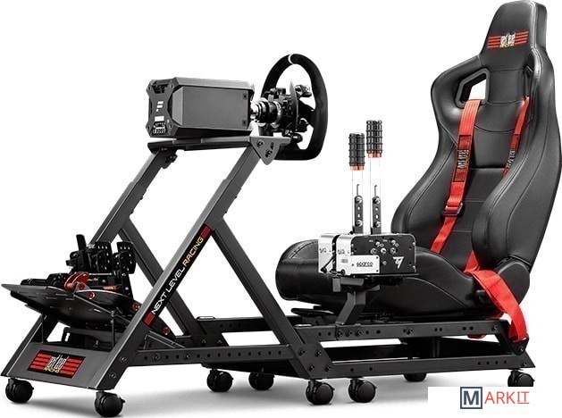 Next Level Racing GT Track - представляет собой кокпит для расположения рулевого колеса, педального блока и коробки передач.Основные особенности:- полностью регулируемая база (регулировка сиденья, рулевой стойки, подставки для педального блока и коробки передач)- возможность установки коробки передач как с правой так и с левой стороны- совместимость с продукцией торговых марок Logitech, Thrustmaster и Fanatec- стальная рама под карбонРост пользователя от 120 до 210 смМаксимальная нагрузка 150 кгРулевое колесо, педальный блок и коробка передач в комплект поставки не входят.