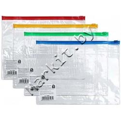 Папка-конверт пластиковая на молнии Sponsor А5+, толщина пластика 0,8 мм, прозрачная, цвет молнии - ассорти Код: 32928