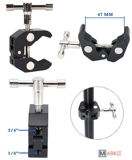 Шарнирный кронштейн Zarrumi Magic Arm - универсальное компактное крепление с широким спектром применения.Многофункциональный держатель позволяет быстро и надежно зафиксировать различные фото и видео аксессуары, оборудование и компактные фотокамеры на кромке стола или трубах диаметром до 47 мм.