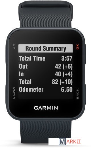 - Компактные, легкие и удобные часы; дисплей с высоким уровнем разрешения и отличным качеством изображения даже при солнечном свете.- Расстояние в ярдах до передней, задней и средней части грина, а также до преград и доглегов на более чем 41,000 предзагруженных полей для гольфа по всему миру.- В часах записываются итоговые данные раунда, общее расстояние и общее время.- Загрузка счетных карточек в приложение Garmin Express для отслеживания показателей раундов.- Аккумуляторная батарея обеспечивает до 12 часов работы в режиме гольфа с GPS.