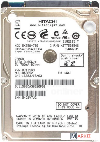 Markit » Жесткие диски » Жесткий диск Hitachi Travelstar 5K750 750GB (HTS547575A9E384)